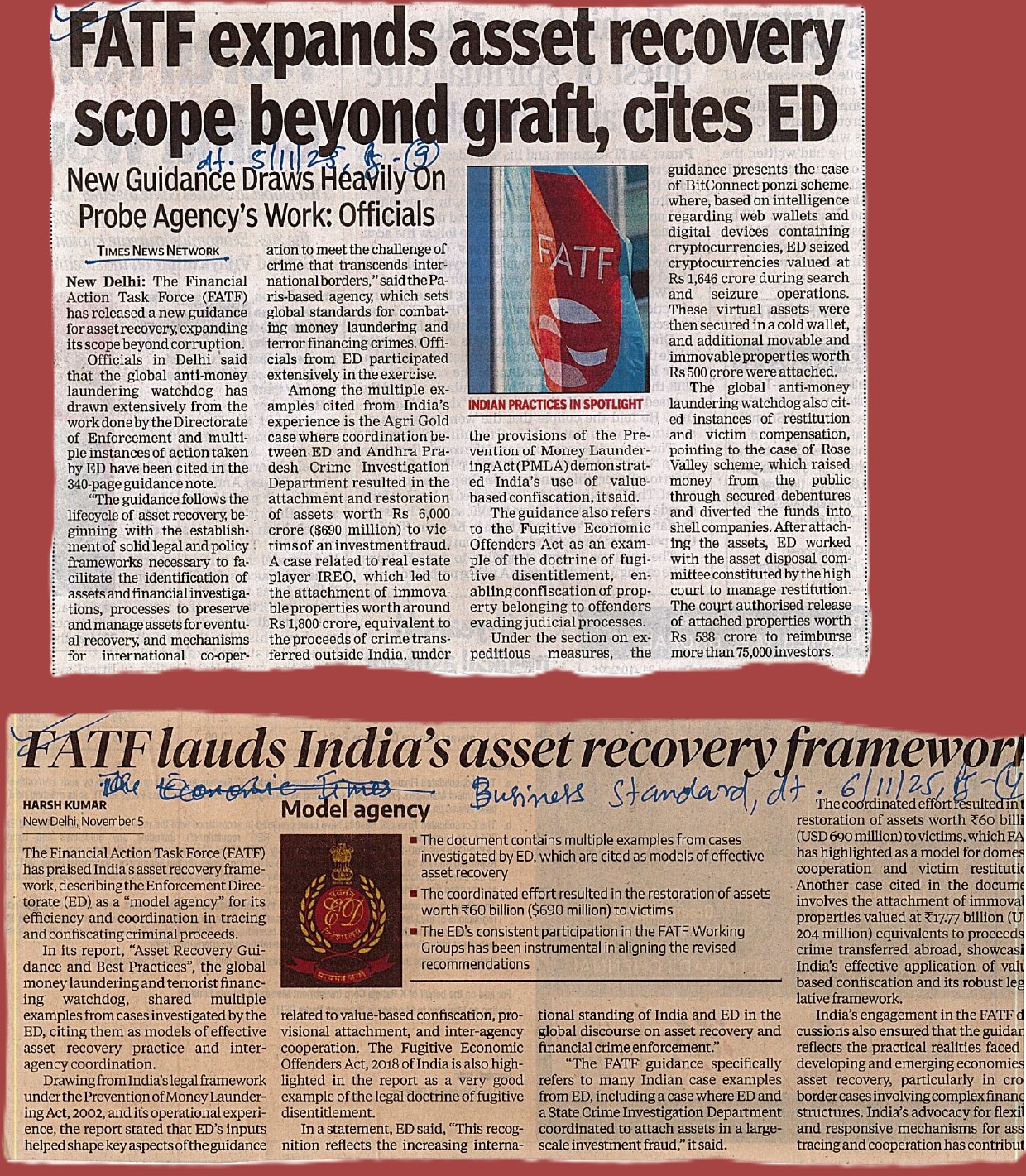 ED’s Best Practices Shape FATF’s Updated Guidance on Asset Recovery